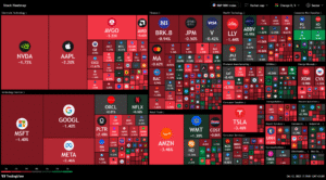 In response, stocks that depend on global manufacturing, exports, or raw materials were punished harshly. The tech sector – particularly chipmakers and AI-related names – bore the brunt of the selling.